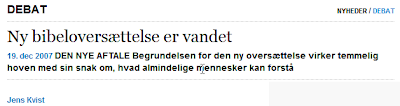 Ajourføring 19. december: Redaktionsgruppen bag Den Nye Aftale tog til genmæle i indlægget “Den Nye Aftale’ holder vand” den 13. december. Jens Kvists replik bringes den 19. december med “Ny bibeloversættelse er vandet.” Hvis jeg sad i redaktionsgruppen, ville jeg nok tænke mig om en ekstra gang, førend jeg ville give Jens Kvist anledning til endnu et indlæg!